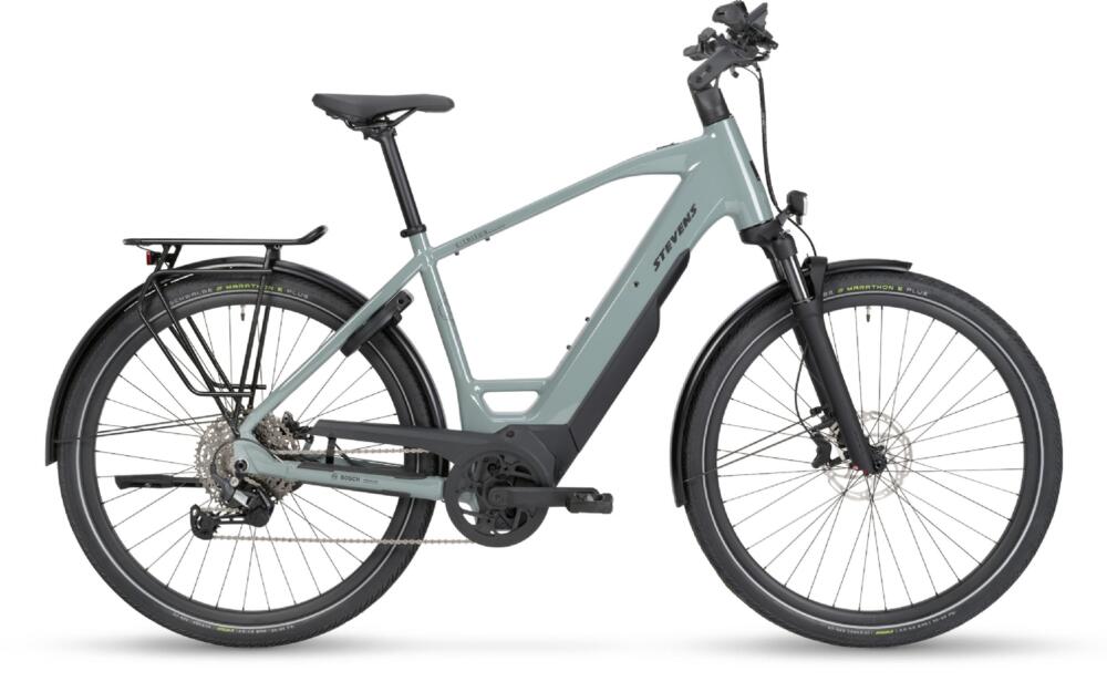 Stevens E-Triton 7.8.1 Plus HT Leistungsfähiger E-Tourer Mit dem Triton 7.8.1 Plus haben die STEVENS Ingenieurinnen und Ingenieure aus der Hansestadt einen leistungsfähigen, belastbaren Touren-E-Bike-Plus-Rahmen entwickelt – wahlweise mit High-Tube- oder tiefem Durchstieg in der Forma-Variante. Dank der „Plus“-Freigabe dürfen Fahrrad, Fahrer und Gepäck gemeinsam beeindruckende 180 kg auf die Waage bringen. Mit seinem klaren, nordischen Design, dem bärenstarken Bosch Performance PX-Antrieb und dem verstellbaren Vorbau bietet es ein besonders komfortables Handling. Kräftig dimensionierte hydraulische Scheibenbremsen mit Bosch eBike ABS sorgen in jeder Fahrsituation für ein zusätzliches Sicherheits-Plus. Modell 2026 ab sofort lieferbar !!! |